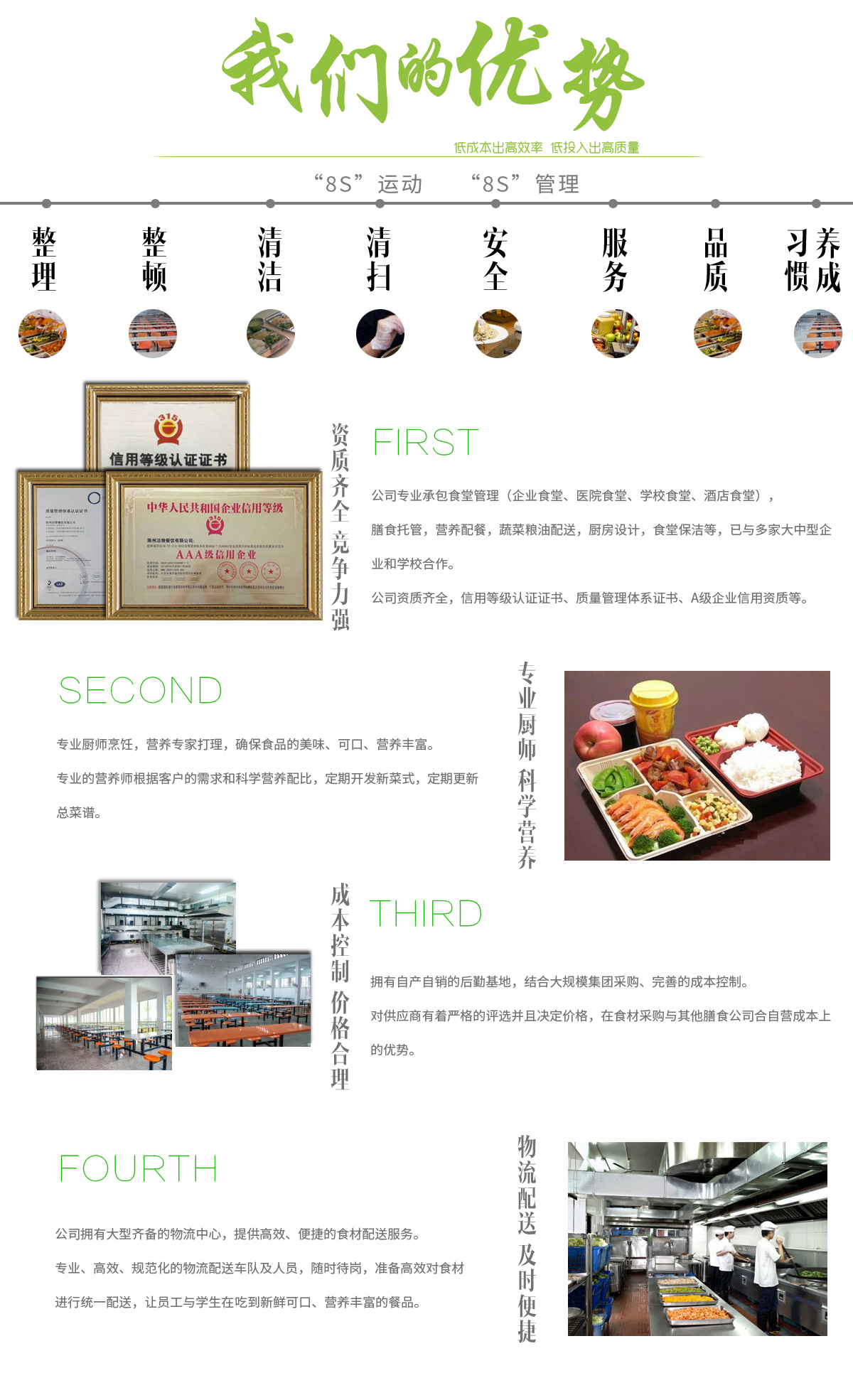 安徽潔雅餐飲管理有限公司是一個具有悠久歷史的行業,她衍生出非常燦爛的飲食文化,但隨著經濟迅速發展的今天,這個傳統行業也同樣充滿激烈的競爭。 安徽潔雅餐飲管理有限公司成立于2012年,初建位置在江蘇,是一家專業承包食堂管理(企業食堂、醫院食堂、學校食堂、酒店食堂),膳食托管,營養配餐,蔬菜糧油配送,廚房設計,食堂保潔。本公司擁有專業的配餐師,擁有國內外各種菜系,西餐,料理,等等,可供應各個外企的就餐習慣。縱觀國內外大中型餐飲企業的成敗經驗教導,潔雅餐飲除了經營特色、規模菜肴之外,更重要的是潔雅擁有一套現代化的、全面的、科學的、適合的量販式餐飲管理體系,使企業具有較強的競爭力和生存能力。我們的宗旨是:低成本出高效率,低投入出高質量,以我們的服務贏得客戶的信賴。 披著昨日的風塵,我們一路高歌一路前...更多>